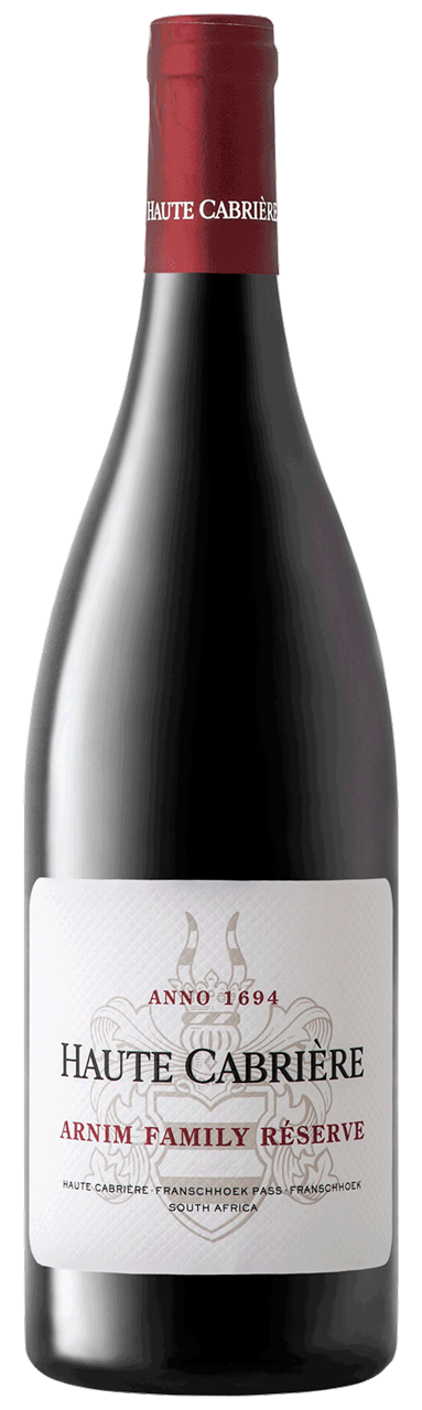 In einem kraftvollen Rot fließt der Haute Cabrière Arnim Family Reserve ins Glas und verströmt sogleich in den intensiven Duft von roten Früchten und Gewürzen. Ein Hauch von Zeder rundet das Bouquet perfekt ab. Am Gaumen überzeugt das Cuvée aus Syrah (75%) und Pinot Noir (25%) mit seinem Facettenreichtum und sehr ausbalancierten Tanninen. Der vollmundige Rotwein reifte achtzehn Monate in französischer Eiche und ist der perfekte Begleiter zu Gerichten der asiatischen Küche, zu dunklem Fleisch oder Käse.