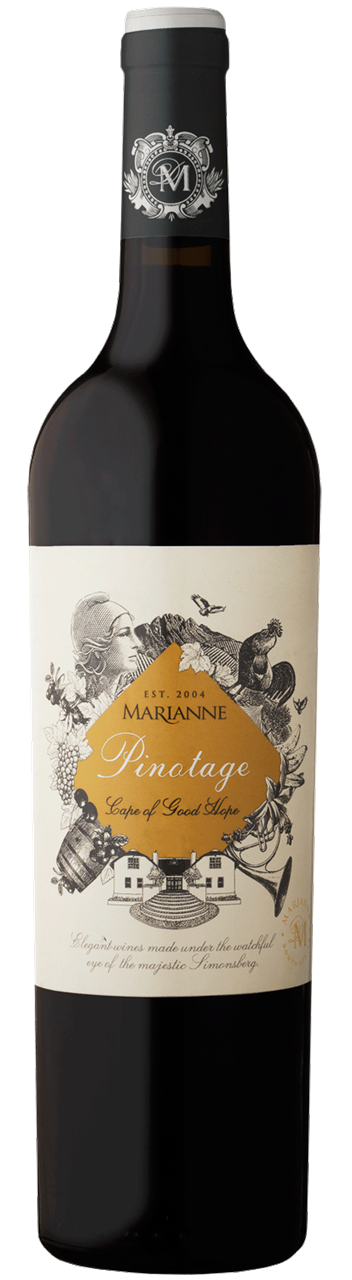 Der Marianne Pinotage ist ein eleganter Vertreter von Südafrikas Nationaltraube. Die schöne dunkelrote Farbe und der wundervolle Duft von Himbeeren und dunkler Schokolade verwöhnen Auge und Nase des Genießers. Eine leichte Veilchennote rundet das Bouquet gekonnt ab. Samtige, gut eingebundene Tannine umschmeicheln den Gaumen und verleihen dem Rotwein eine gute Struktur. Der Marianne Pinotage reifte sechzehn bis achtzehn Monate im Barrique und ist für sich allein schon einfach ein Genuss. Sie können den Rotwein aber auch ganz wunderbar zu herzhaften Gerichten mit Wild oder dunklem Fleisch servieren.