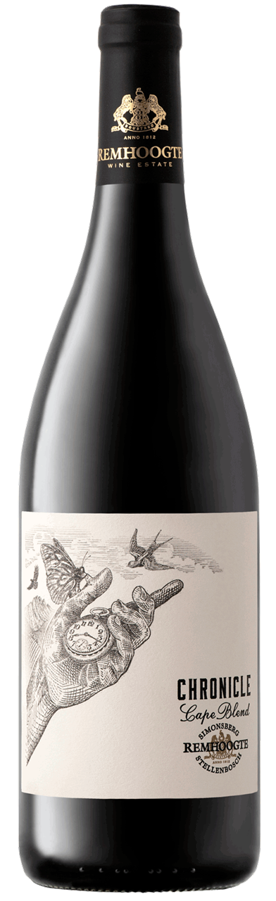 Der Remhoogte Chronicle Cape Blend ist ein ganz besonderer Wein, denn die Trauben für das Rotwein-Cuvée aus Cabernet Sauvignon (40%), Pinotage (27%), Shiraz (25%) und Merlot (8%) kommen von jedem Weinberg des Gutes – daher ist der Wein auch eine Art Chronik seines Jahrgangs. Der komplexe Rotwein funkelt rubinrot im Glas und verströmt den fruchtigen Duft von Himbeeren, reifen Pflaumen und Sauerkirschen. Aromen von schwarzen Oliven, Nelken und Veilchen sorgen für eine würzige Komponente. Am Gaumen setzt sich die harmonische Komposition aus fruchtigen und würzigen Nuancen fort. Noten von Pflaumen und Kirschen werden von weißem Pfeffer und Oliven umspielt und verleihen dem Remhoogte Chronicle Cape Blend einen langanhaltenden Geschmack. Genießen Sie den Rotwein, der 24 Monate in Eiche reifte, entweder pur oder zu pikanten Gerichten mit dunklem Fleisch oder Wild.