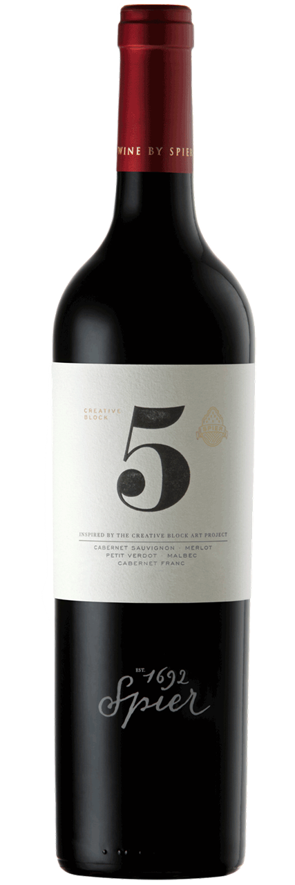 In einem dunklen Rubinrot schimmert der Spier Creative Block 5 im Glas und verströmt den fruchtigen Duft von Brombeeren, schwarzen Johannisbeeren und Kirschen. Aromen von dunkler Schokolade, Zeder und Fenchel sorgen für noch mehr Vielschichtigkeit. Am Gaumen begeistert das Cuvée aus Cabernet Sauvignon (47%), Merlot (31%), Cabernet Franc (10%), Petit Verdot (9%) und Malbec (3%) ganz besonders mit seiner großartigen Balance und der tollen Tanninstruktur. Die fünf Rebsorten, die dem Spier Creative Block 5 auch ihren Namen gaben, wurden einzeln ausgebaut und nach achtzehn Monaten in französischer Eiche blendiert. Genießen Sie den Rotwein am besten zu Gerichten mit dunklem Fleisch, aber auch Herzhaftes wie ein Pilzrisotto passt ganz ausgezeichnet zu dem Spier Creative Block 5.