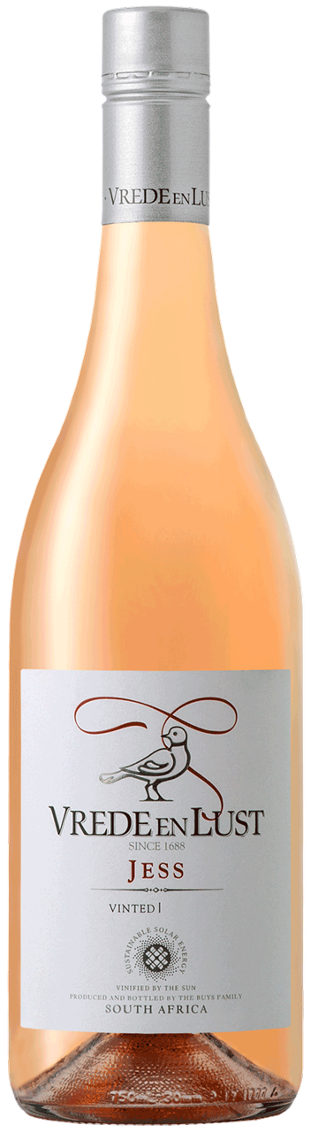 In einem wunderschönen Rosa schimmert der Vrede en Lust Jess Rosé im Glas und verzaubert den Genießer mit seinem wundervollen fruchtig floralen Duft. Auch am Gaumen begeistert der zugängliche Rosé aus Pinotage (85%), Shiraz (10%) und Grenache Noir (5%) mit frischen Erdbeer- und Himbeernoten, die von Wassermelone und blumigen Nuancen untermalt werden, bevor er sich mit einem weichen Abgang verabschiedet. Dank seines unkomplizierten Charakters ist der Vrede en Lust Jess Rosé schon für sich allein ein Genuss, er begleitet aber auch leichte Gerichte mit Salat, Fisch oder Meeresfrüchten ganz ausgezeichnet. Seinen Namen verdankt der Wein übrigens der ältesten Tochter des Eigentümers, der ihr den Wein zu ihrem 16. Geburtstag widmete. Aus diesem Geschenk entwickelte sich eine echte Erfolgsgeschichte, denn der Vrede en Lust Jess Rosé begeistert Roséliebhaber immer wieder aufs Neue.