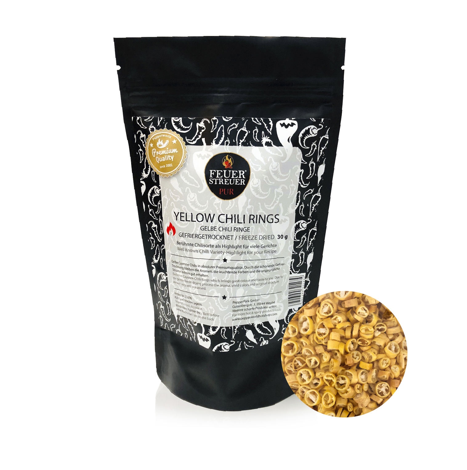 Yellow Chili Rings, gefriergetrocknet – FeuerStreuer Pur